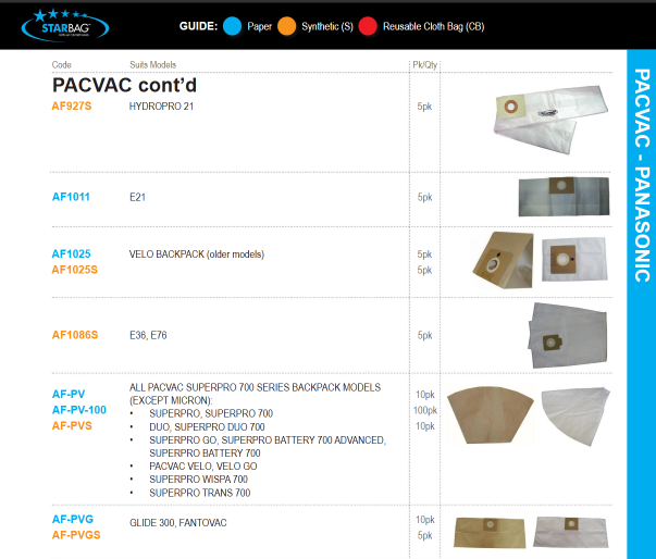 - For Pacvac vacuum cleaners