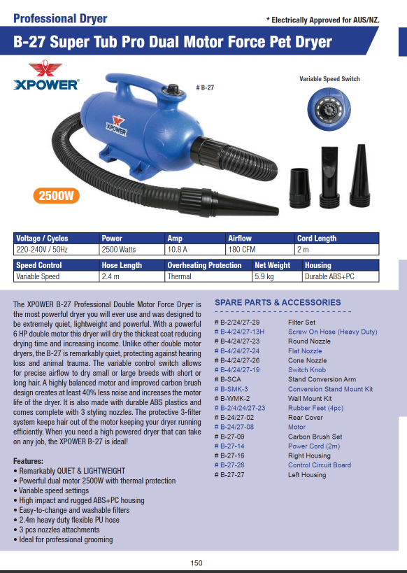 The Control Circuit Board suitable for B-24 PET Dryer is a high-quality replacement electronic component designed to restore or upgrade the control system of your B-24 Thermal Ace Force Pet Dryer. If the original circuit board becomes faulty - causing issues like inconsistent heating, irregular airflow, power failures, or unresponsive controls -this replacement board ensures that your dryer’s full range of functions works again reliably. Professionally manufactured to match the original specifications, this board delivers stable voltage regulation, dependable control over heating and motor operations, and consistent performance throughout each grooming session. Installing this replacement circuit board can save you from purchasing an entirely new dryer, giving your existing B-24 unit a new lease on life. Ideal for pet groomers, grooming salons, and pet owners who want to maintain peak performance and safety standards.