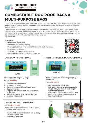 Our Bonnie Bio compostable dog poop bags are a great alternative to plastic bags and are small enough to fit comfortably into your handheld dog poop bag dispensers. These 100% home compostable bags are supplied on a roll and can be popped into your bag or pocket for everyday convenience.