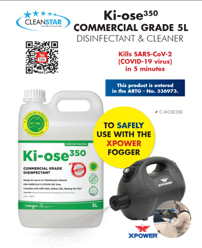 Ki-ose 350 is a ready to use 2-in-1 high performance disinfectant cleaner for all hard surfaces. It provides broad spectrum disinfection in industrial, institutional, commercial, healthcare and household settings. Will not harm or damage fabrics, plastic, metals, rubber or other surfaces.