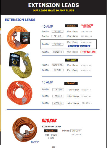 CLEANSTAR - ORANGE RUBBER EXT LEAD (20M 10AMP 3CR)