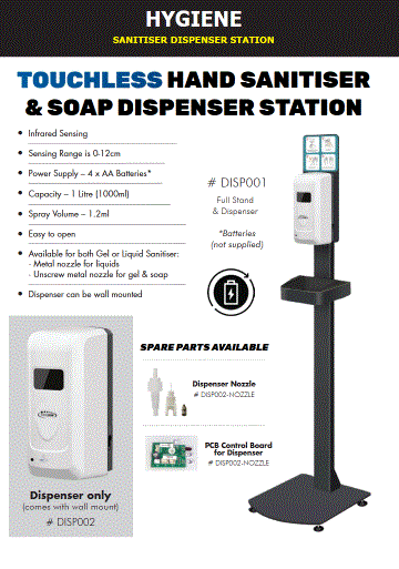 - Single Touchless Hand Sanitiser and Soap Dispenser Station