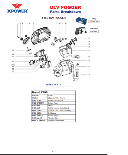 CLEANSTAR - XPOWER F16B FOGGER CHARGER ASSEMBLY