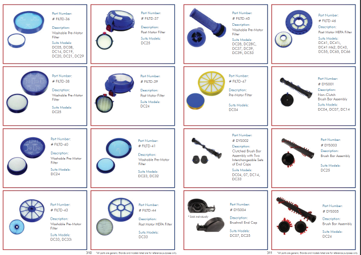 - Dyson - DC41, DC41i, DC41 Mk2, DC43, DC55, DC65, DC66