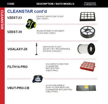CLEANSTAR - CLEANSTAR BUTLER PRO VACUUM CLEANER H14 HEPA FILTER