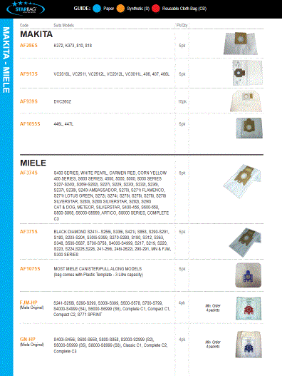 - Suits Miele models: S241 - S256i, S290 - S299, S300i - S399, S500 - S578, S700 - S799, S4000 - S4999 (S4), S6000 - S6999 (S6), Complete C1, Compact C1, Compact C2