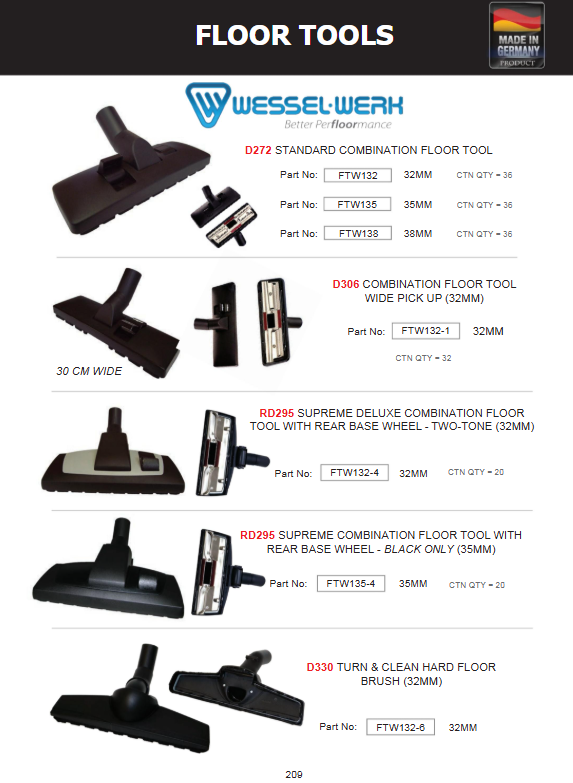 The Wessel-Werk D330 Turn and Clean Hard Floor Brush – 32 mm is a wide, low-profile vacuum attachment designed for efficient cleaning on hard floors. Its swivel and pivot head allows smooth maneuvering around furniture while delivering excellent dust and debris pickup.