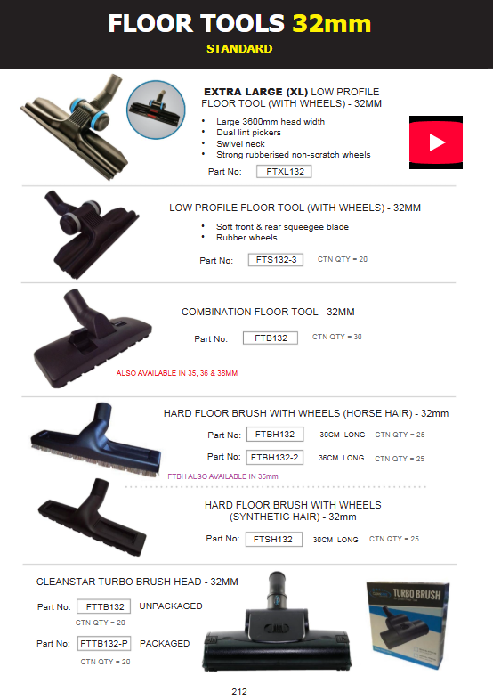 CLEANSTAR- EXTRA LARGE (XL) LOW PROFILE FLOOR TOOL (WITH WHEELS) - 32MM