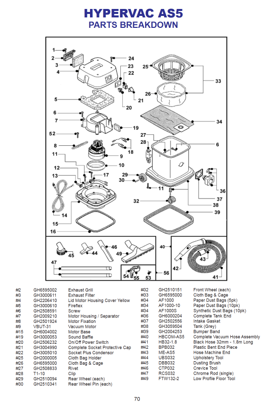 ·  Compatibility: Fits AS5 HyperVac models (Cleanstar, Ghibli, Pullman)