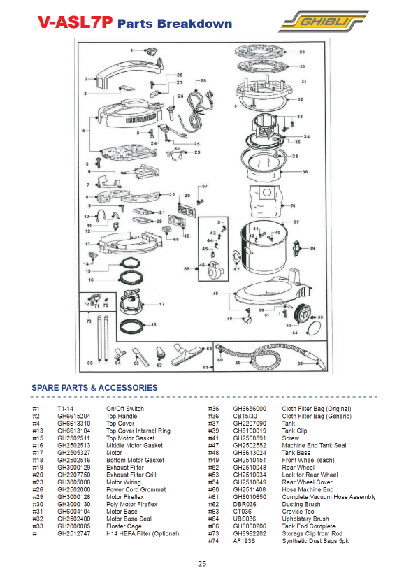 ·  Fits Ghibli ASL7P and AS9P vacuum models