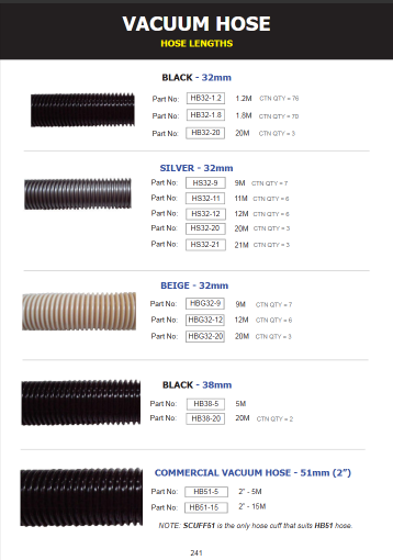 - Single 20m length of 38mm black vacuum hose