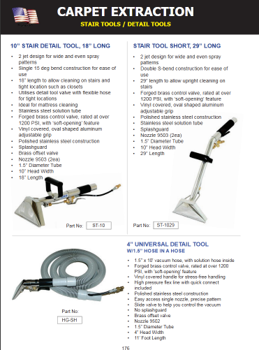 • 1.5" x 10' vacuum hose, with solution hose inside