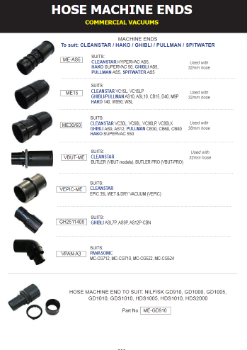 - For various Pullman, Cleanstar and Ghibli, Hako and Spitwater commercial vacuum cleaners