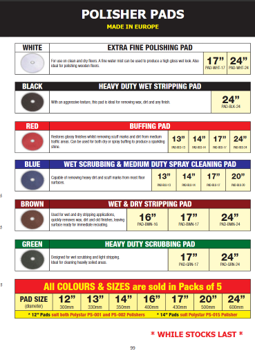 CLEANSTAR - FLOOR PAD 24" BROWN 600MM-5PK