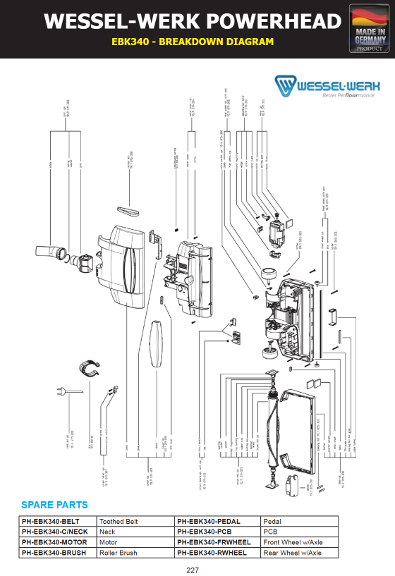 The Rear Wheel with Axle to suit EBK340 Powerhead is a vital replacement component engineered specifically for the Wessel Werk EBK340 powerhead system. This assembly includes the rear wheel paired with its corresponding axle, crafted to OEM tolerances to ensure smooth motion, alignment, and longevity. Over time, machine rear wheels can suffer wear, cracking, or deformation, causing drag, wobble, or uneven movement; replacing them with this high‑precision unit restores optimal operation, improves floor contact stability, and enhances maneuverability.