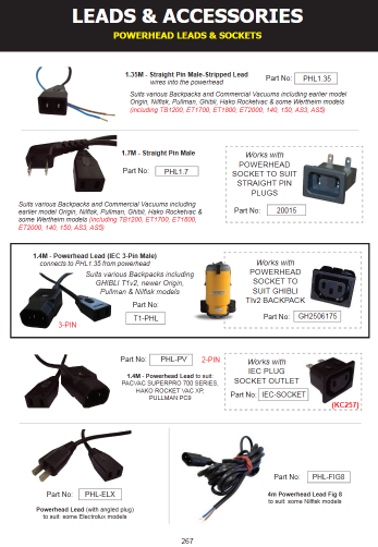 CLEANSTAR - POWERHEAD LEAD - ELECTROUX - ANGLED PLUG