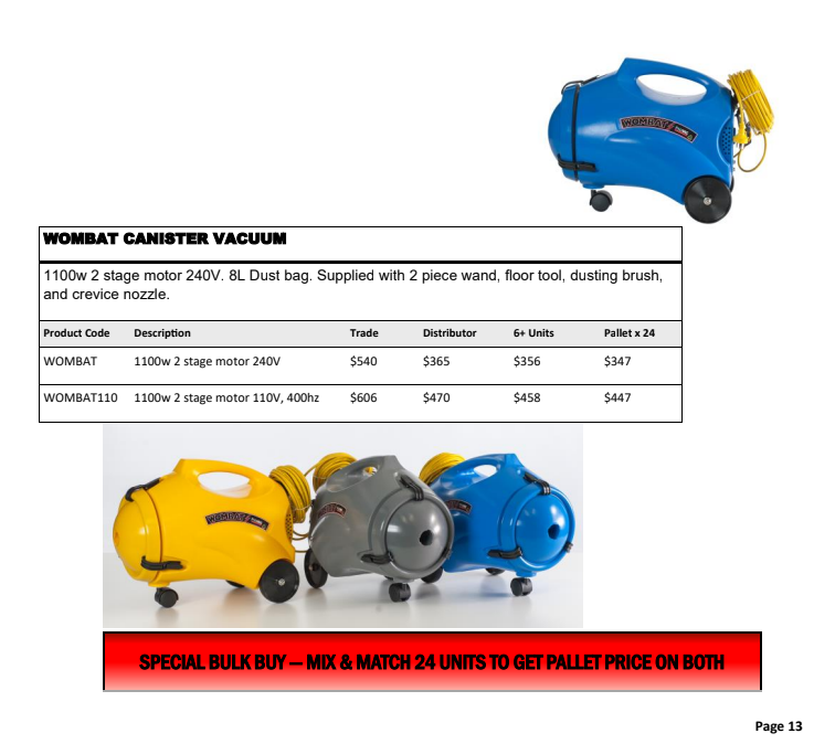 The Polivac Wombat commercial vacuum cleaner is built tough for the toughest commercial conditions for cleaners and tradespeople. Engineered to be reliable, easy-to-use and even easier to service.When you want a ‘bullet-proof’*, easy-to-use, simple to service floor vacuum, you can rely on the legendary long life and reliability of the Polivac Wombat.
