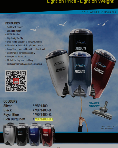 CLEANSTAR AEROLITE 1400 WATT BACKPACK BURGUNDY