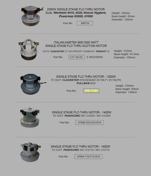 CLEANSTAR - MOTOR TO SUIT HOUSEMAID, VC10LP / VC10LPH