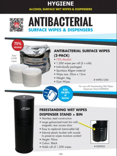 • Suitable for use with Freestanding Wet Wipes Dispenser Stand and Bin (DISP003)