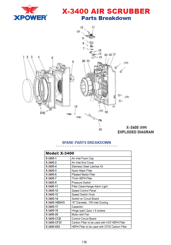 The Hinge Pair (2 pcs + 8 screws) for XPOWER X-3400 Air Scrubber is a genuine replacement component made specifically for the X-3400’s ABS housing. Over time, regular use or rough handling can wear out or damage the housing hinges, making it difficult to open and close the unit or causing unwanted rattling. This hinge set restores the structural integrity of the scrubber casing, ensuring that the front and rear panels align properly and operate smoothly.