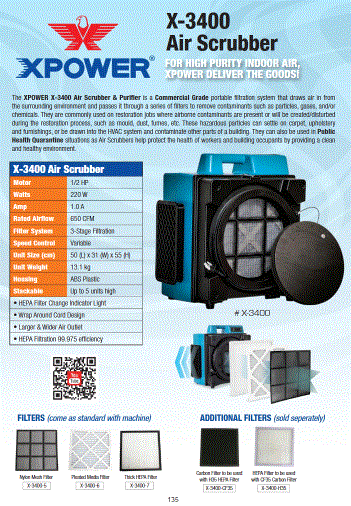 - Must be used together with H35 HEPA Filter (X-3400-H35)